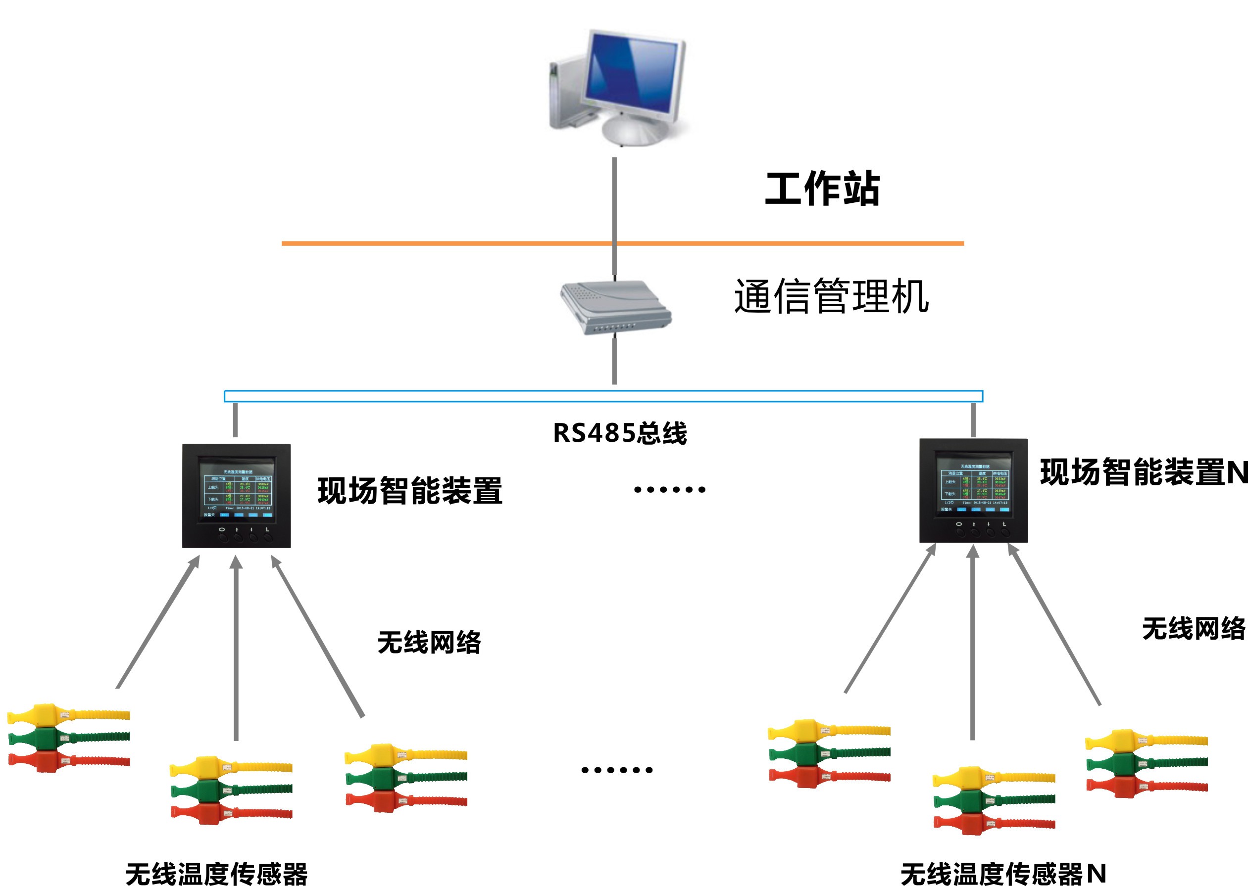 無線式溫度監(jiān)測系統(tǒng)具有極高的可靠性和安全性,且價格低廉,可直接安裝到每臺高壓開關(guān)、母線接頭、戶外刀閘或變壓器上。系統(tǒng)配備標(biāo)準(zhǔn)通訊接口,可聯(lián)網(wǎng)運行。通過上位機(jī)軟件,可記錄高壓設(shè)備實時運行溫度的數(shù)據(jù)。為高壓設(shè)備的維修提供累積數(shù)據(jù),實現(xiàn)了高壓設(shè)備熱故障預(yù)知維修。